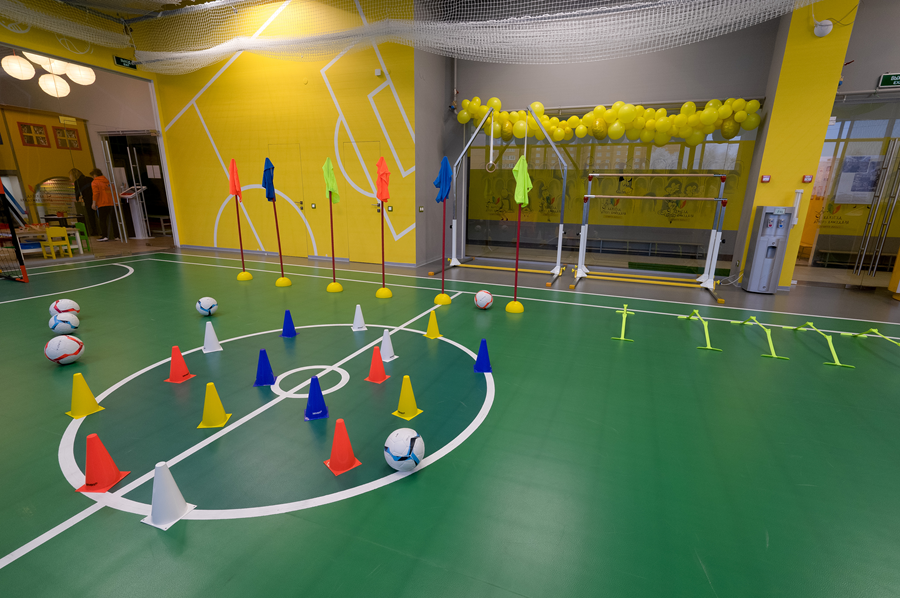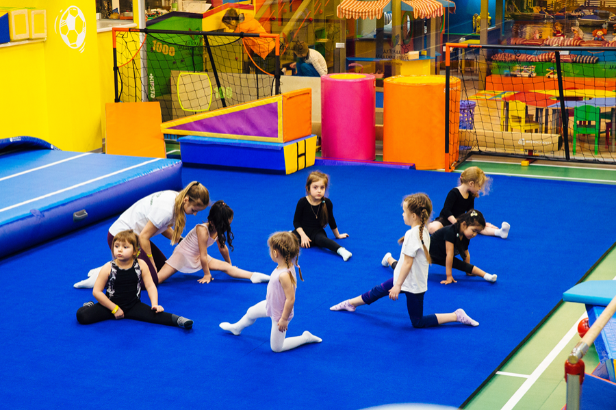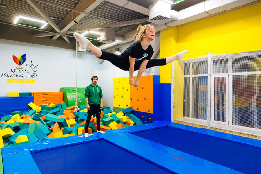 Первое в России детское пространство, соответствующее всем стандартам детского спорта и фитнеса. Широкая инфраструктура - наличие батута, батутной ямы, гимнастического оборудования, футбольного поля и детского городка